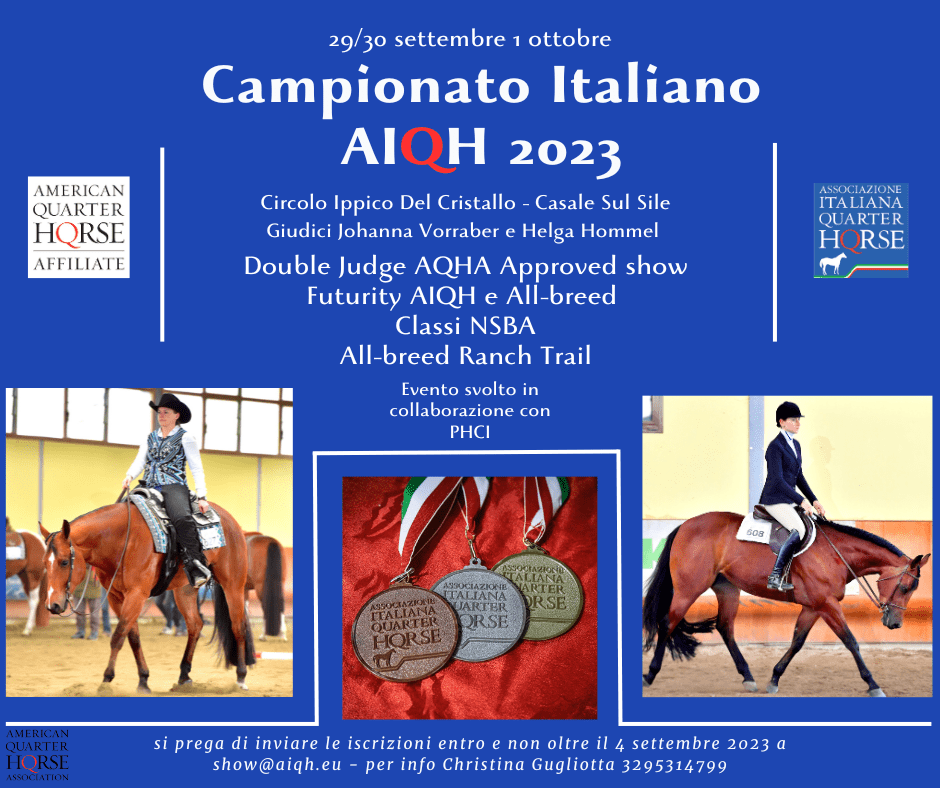 Nel week end di fine mese si volgerà il 4° Show dei Campionati Italiani Quarter (AIQH) che tra le diverse specialità in gara offrono anche classi di SR JR Reining.QUI LIVEWEB GRATUITO